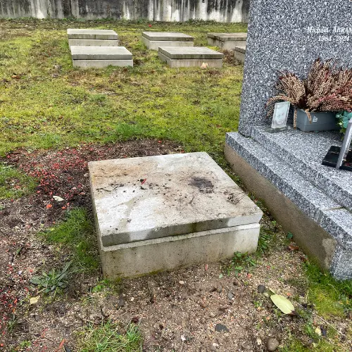 Un projet récemment mené par Cimélo illustre bien les enjeux de la végétalisation de cavurne. Il concernait une concession de petite taille, sur un terrain légèrement en pente, avec un cavurne émergent et sans espace entre les tombes.