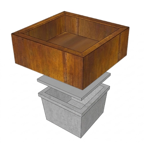 Le bac, comparable à une jardinière, constitue une solution simple à mettre en œuvre. Il permet de contenir le substrat et facilite l’entretien. En revanche, il suppose une surface plane et s’adapte mal aux cavurnes émergents. De plus, il limite le développement racinaire des végétaux, ce qui peut impacter la pérennité du cavurne paysager.